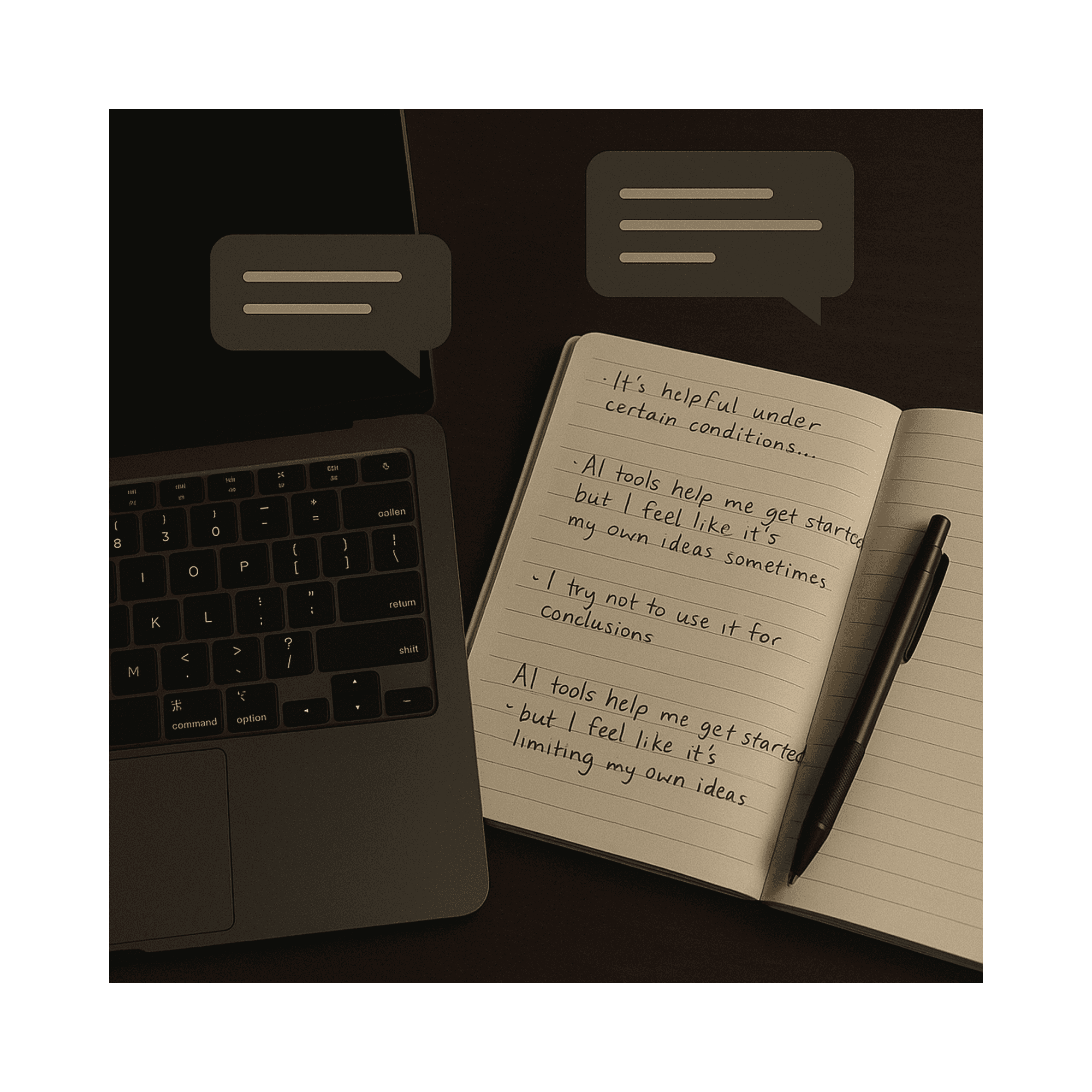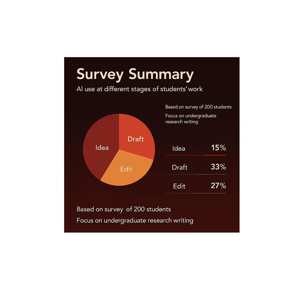 AI writing tools are reshaping academic work, offering support, speed, and structure, but also raising questions about authorship, comprehension, and cognitive depth. This study examined how undergraduate students integrate AI tools, such as ChatGPT, into their writing processes. Through surveys and in-depth interviews, we uncovered how students balance convenience against cognition, productivity against originality, and AI-assisted fluency against their own intellectual voice. The research revealed distinct mental models of AI support, ranging from grammar assistance to idea expansion, and highlighted how these patterns influence trust, cognitive load, and perceptions of agency. I led UX research planning, qualitative synthesis, and design implications for human-centered AI writing tools. Sai Thanmai Morramreddi contributed to data collection and early coding. Our insights informed design principles that support transparent, agency-driven human-AI collaboration, directly aligning with Google's vision for responsible AI.